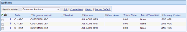 | NOTE: Since the Auditee list may become quite lengthy you may wish to open up the Saved Search capability in this table in order to better search and sort for your different types of Auditees. Please see the Forms Configurator for more information on how to open up Saved Searches in this or any list for which you would like to bring out this functionality. |